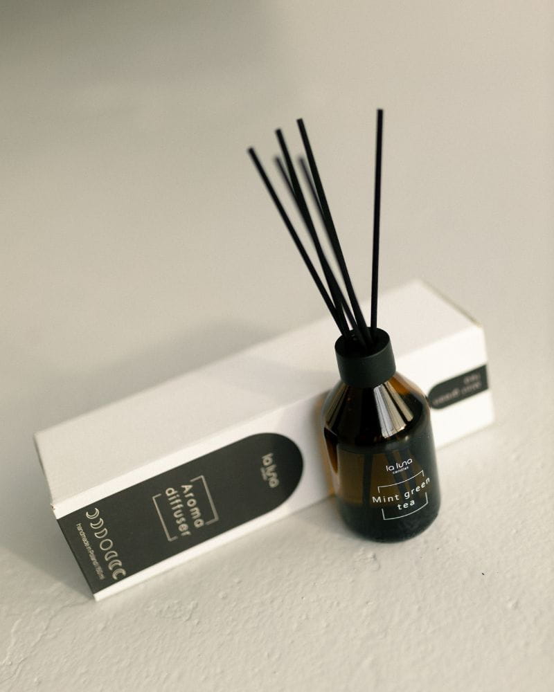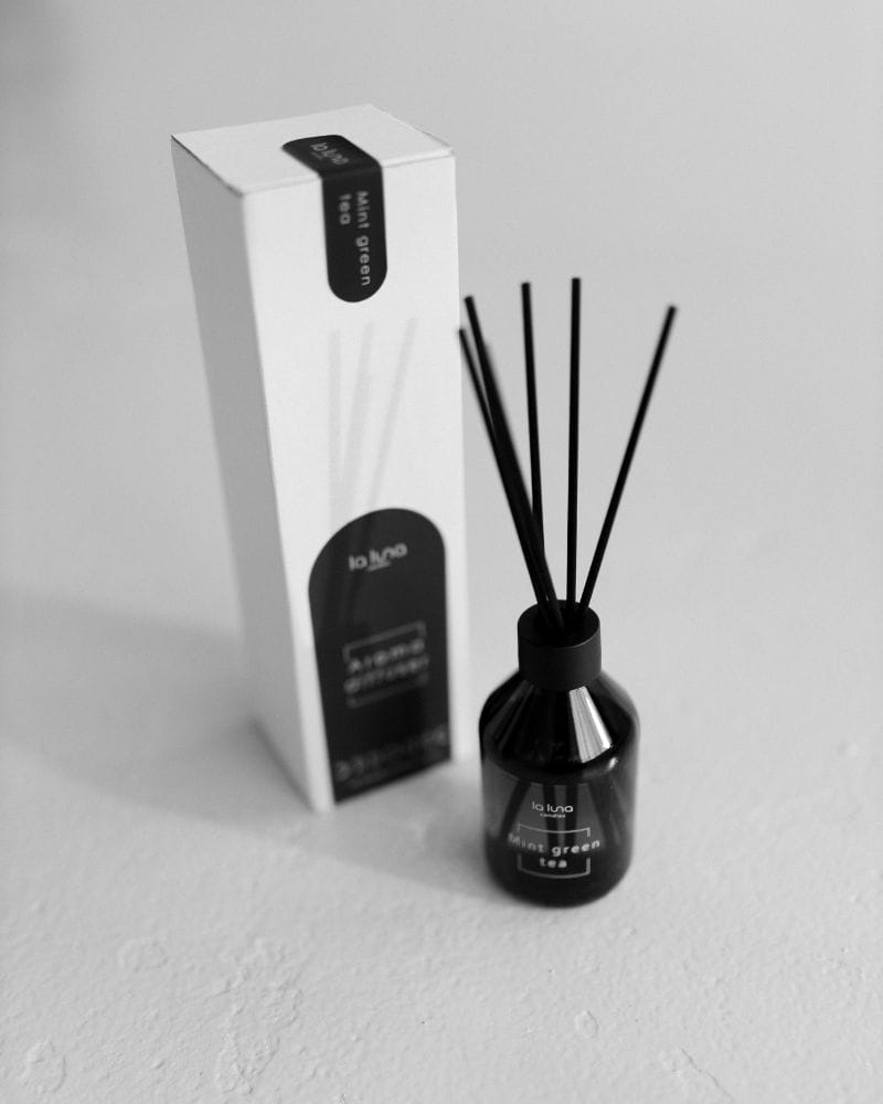 Aby cieszyć się pełnią zapachu dyfuzora, wystarczy włożyć do buteleczki patyczki, które stopniowo nasiąkają esencją i uwalniają aromat. Zapach mięty i zielonej herbaty rozprzestrzenia się w pomieszczeniu równomiernie, utrzymując się przez wiele dni. To świetne rozwiązanie dla osób ceniących sobie prostotę i wygodę użytkowania.