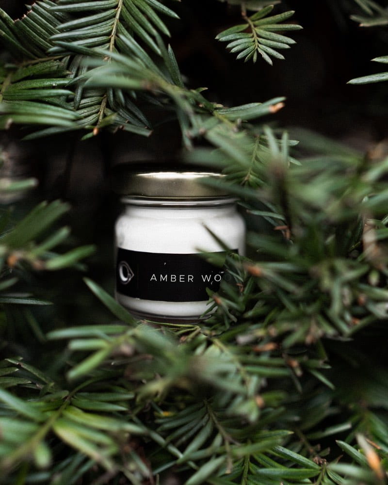 Naturalna świeca sojowa leśna "Amber wood" – kompaktowa i praktyczna